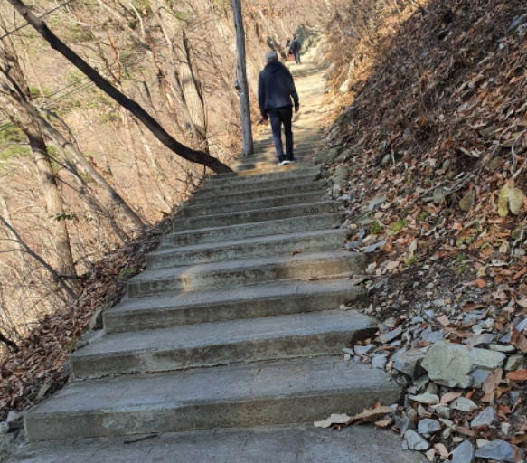 사리암은 산 중턱에 있어 처음에는 평탄길을 걷다 보면 이런 길이면 충분히 갈 수 있다 생각하고 시원한 겨울바람을 맞으며, 기분 좋게 대화도 나누고 웃으면서 걸어갔습니다.