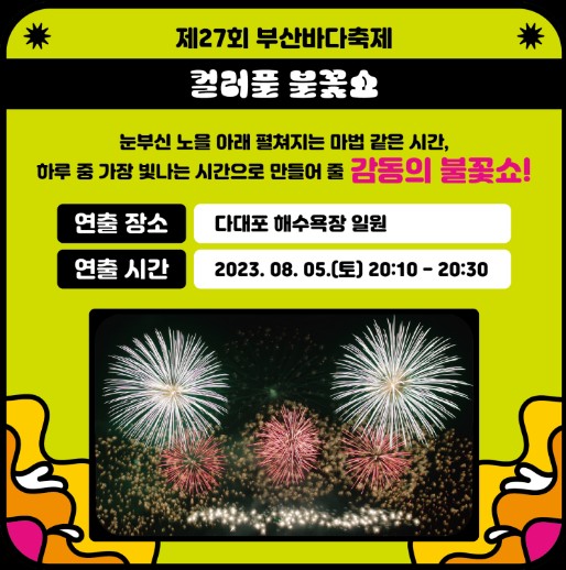 2023년 8월의 뜨거운 여름을 시원하게 즐길 수 있는 부산바다축제와 함께 즐겁고 행복한 여름휴가되시길 기원합니다.