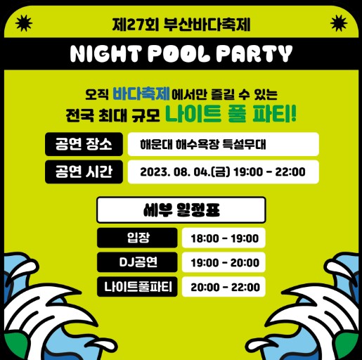 전국 최대 규모의 바다축제에서 즐길 수 있는 "Night Pool Party"입니다.