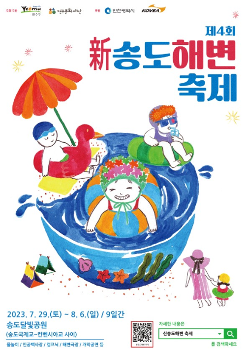 인천 연수구 송도달빛공원일원 송도국제교, 컨벤시아교 사에서 5년 만에 열리는 제4회 송도해변축제입니다. 인천 연수구를 대표하는 여름 해변축제로, 뜨거운 여름을 온 가족이 함께 즐길 수 있는 여름 축제입니다.